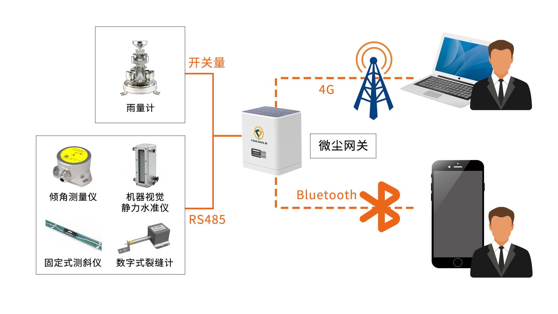 微尘系列智能数据网关(TH-RTU-M1/M2)可以接入各类RS485监测设备(倾角、振动、沉降、裂缝、测斜等)及开关量设备(雨量计),并为设备供电,简化现场安装,快捷方便。另外太阳能充电板在阳光照射情况下可为设备补充额外电能,大幅提高续航能力。广泛应用于大坝、建筑物、地灾、边坡等场景中。