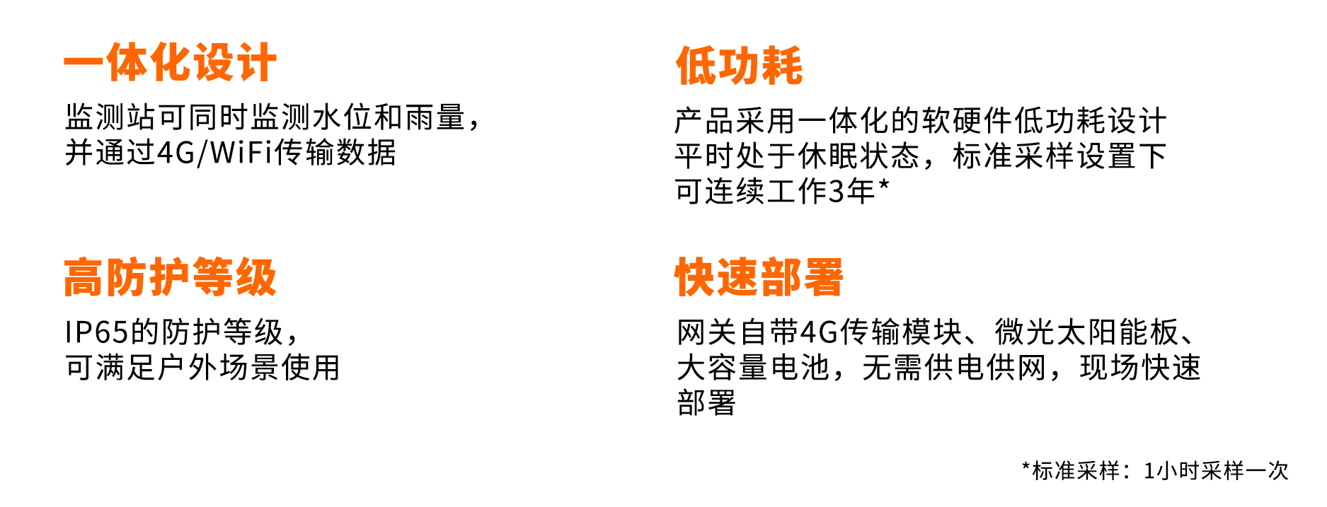 一体化水雨情监测站由微尘系列智能数据网关、翻斗式雨量计、雷达水位计、立杆组成,可以同时监测水位、雨量,支持公网或者私有化部署。网关、雨量计、水位计均安装在立杆上,整套系统无需供电供网,现场安装方便快捷,可实现快速化部署,广泛适用于大坝、边坡、地灾、基坑等监测场景。